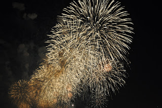 They brought in six fireworks launching barges. For 30 minutes they fired more than 10,000 rounds into the sky, simultaneously from the six barges. When they were done it was definitely a "Spare the Air Day over the city!